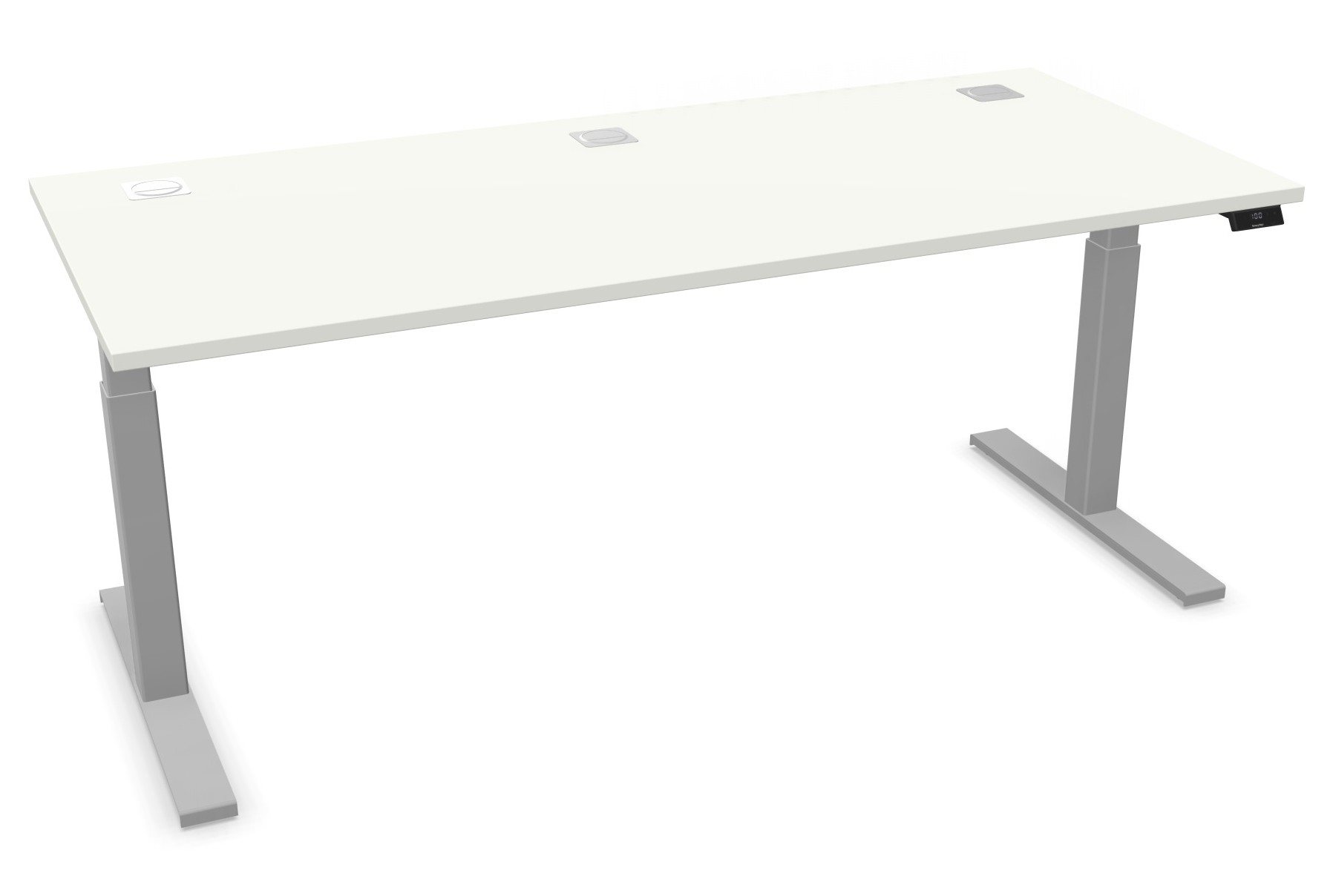 - 3 Kabeldurchlassdosen in Tischplatte integriert, Position rechts. mittig und links, Farbe Weiß