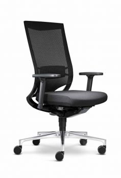 - Rückenlehne mit umlaufendem Trägerrahmen aus glasfaserverstärktem Polyamid, schwarz, bespannt mit atmungsaktivem 3DStricknetz in der Farbe schwarz