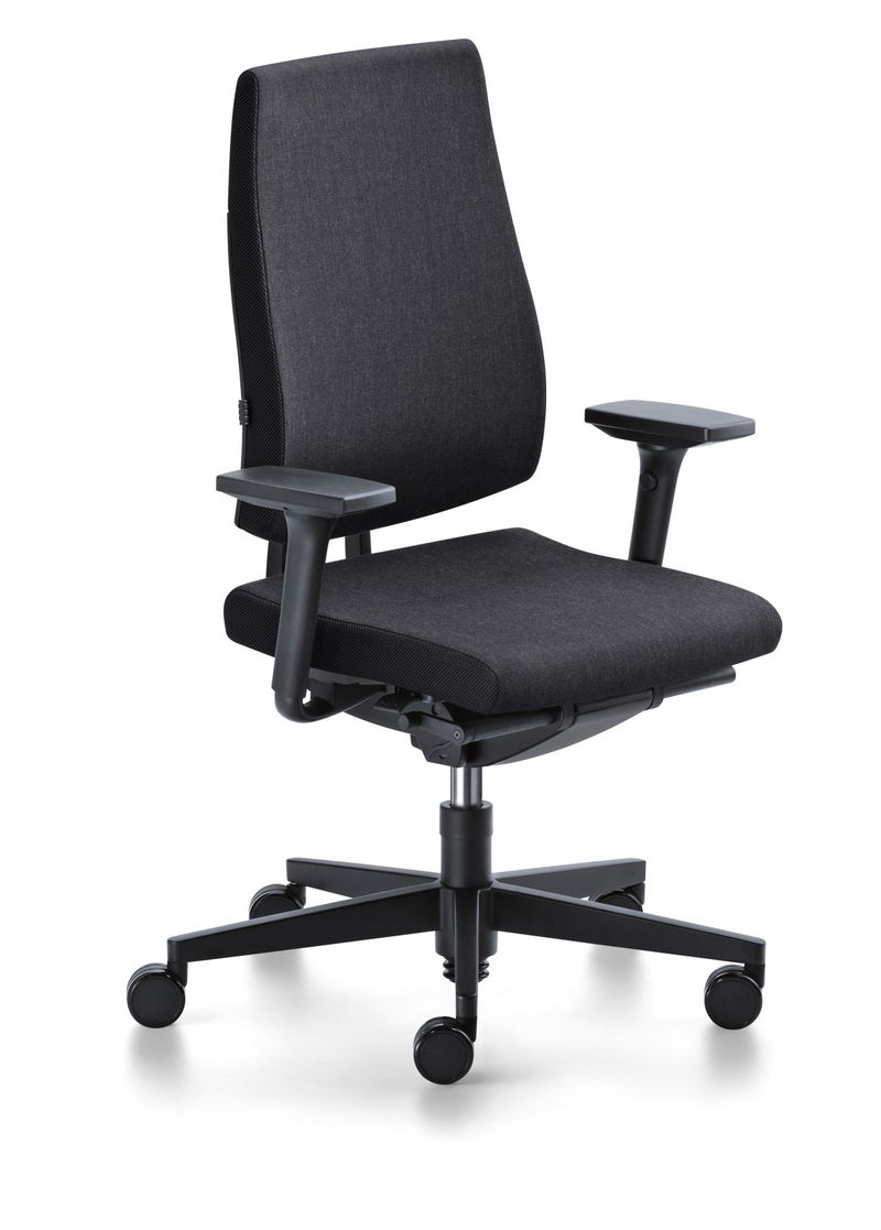 - mittelhohe und breite Rückenlehne mit Komfortpolster und patentierter Dorsokinetik (die Rückenlehne unterstützt alle Rückwärtsbewegungen und Seitwärtsbewegungen), ergonomisch ausgeformt, Rückenlehnenneigung stufenlos arretierbar